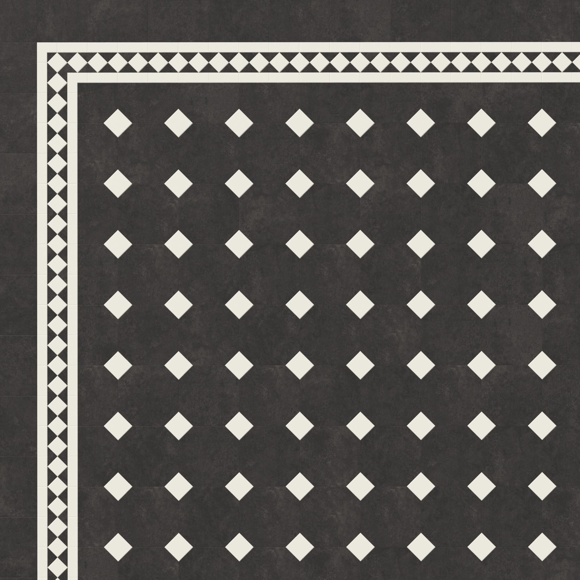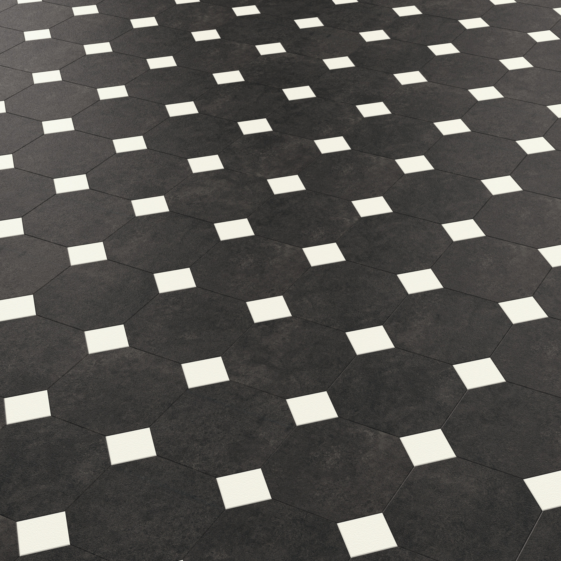 Misterne detale i bogaty monochromatyczny styl wzoru Montpellier wyznaczają wyraźny punkt centralny pomieszczenia dzięki połączeniu ośmiokątnych płytek i kwadratowych wstawek w tradycyjnej kombinacji kolorów Nero i Lace. Płytki mają mikrofazowane krawędzie, grubość 2,5 mm i warstwę użytkową 0,5 mm oraz wskaźnik antypoślizgowy R10.